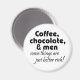 Coffee humour on a white magnet. Change the colour of the background easily to fit your kitchen or office ascetic. Coffee, chocolate & men some things are just better rich!