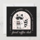 Funny racoon lovers feral coffee club powered by caffeine sarcastic quotes first coffee then chaos. Cool weird wild animal retro vintage aesthetic girls friends squad gifts small print card.