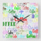 The word "Coffee" brightly displayed in different fonts, and colours. Perfect for the coffee lover!