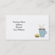 A unique card featuring a white background, a tall blue mug of hot coffee and a lemon muffin beside it. Customise with all of your business information as desired.