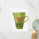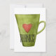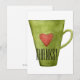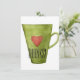 Flat card with envelope features tall watercolor green coffee mug with heart and "Thanks" in modern text overlay