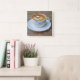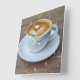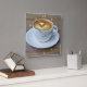 Unique gift for coffee lovers is this rustic coffee theme kitchen clock- Photo background of a saucer and cup of coffee with a heart made from cream on rustic wood table. Silver colour clock face number. Fun housewarming gift for coffee drinkers, barista and retired couples. Would also be cool clock for a coffee shop, country breakfast restaurant or bakery.