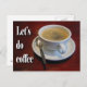 Coffee cup on wooden table postcard