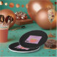 A fun design featuring a coffee cup full of hot coffee and a few coffee beans beside it. Change the background colour of the paper plate as desired.