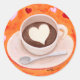 Happy and Cute Art painted by Naomi Ochiai from Japan. Many love Coffee!! Cute coffee cup design with Hearts in warm bright orange tone. Nice for Valentine's Day Gifts!!