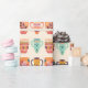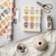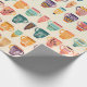 A variety of colourful coffee and tea cups with different floral and heart patterns are arranged in a repeating pattern against a white background. Each cup showcases a unique combination of colours and designs, creating a vibrant and symmetrical display.