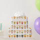 A variety of colourful coffee and tea cups with different floral and heart patterns are arranged in a repeating pattern against a white background. Each cup showcases a unique combination of colours and designs, creating a vibrant and symmetrical display.