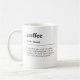 Funny coffee definition mug in minimalist black-and-white dictionary style. Perfect for coffee lovers, baristas, coworkers, or anyone fuelled by espresso, lattes, or a strong cup of joe. Modern ceramic mug with bold typography and clean design makes a stylish daily dose of humour and caffeine. Ideal personalised gift for birthdays, Christmas, Secret Santa, or just because. Celebrate your love of coffee with this unique and clever dictionary-style mug!