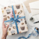 Coffee Drinks and Cats Pattern Cute Wrapping Paper