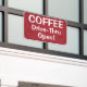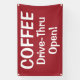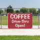 This bright banner will let customers see your coffee shop or booth drive-through is open and ready for business! It features clear, easy-to-read lettering to catch attention. Feel free to customize this signage with your own words, if you like!