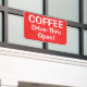 This bright banner will let customers see your coffee shop or booth drive-through is open and ready for business! It features clear, easy-to-read lettering to catch attention. Feel free to customize this signage with your own words, if you like!