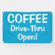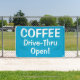 This bright banner will let customers see your coffee shop or booth drive-through is open and ready for business! It features clear, easy-to-read lettering to catch attention. Feel free to customize this signage with your own words, if you like!