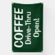 This bright banner will let customers see your coffee shop or booth drive-through is open and ready for business! It features clear, easy-to-read lettering to catch attention. Feel free to customize this signage with your own words, if you like!