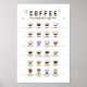 Perfect wall art for your kitchen and a great gift for coffee lovers. This poster also functions as a guide for aspiring baristas. Features 24 types of coffee.