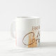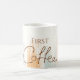 Start your day with a custom watercolor coffee mug, embellished with the phrase coffee first.