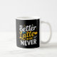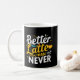Start your day with humour and style! This bold typographic design features the quote "better latte than never ” on a sleek black background. Perfect for coffee lovers, it blends fun vibes with modern style. A funny coffee gifted idea and a coffeeful mug funny must-have!