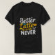 Start your day with humour and style! This bold typographic design features the quote "better latte than never ” on a sleek black background. Perfect for coffee lovers, it blends fun vibes with modern style. A funny coffee gifted idea and a coffeeful shirt funny must-have!