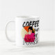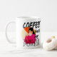 Simple, Coffee gives me super power, Cool modern graphic funny coffee mug of a woman drinking coffee portrait and a colourful retro cintage sunset triangles alongside a funny quote coffee gives me teacher powers,