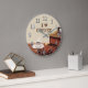 This clock has a retro look that is perfect for a kitchen, breakfast area or even coffee bar. I 'heart' (love) Coffee is a coffee bean style text over a beige background. In the foreground is a classic cup of coffee and an old style coffee grinder. The numbers are a metallic grey with a three dimensional look.