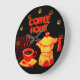 COFFEE HOUR /Red Yellow Coffee cup and coffeepot Large Clock