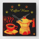 COFFEE HOUR /Red Yellow Coffee cup and coffeepot Square Wall Clock
