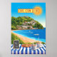 An editable Spanish vintage style poster with two cups of coffee or cafe con leche on a cafe table overlooking a sunny bay with a plate of traditional almendrados or Spanish almond cookies. Add names, a place and date on the menu chalkboard of a special memory, perhaps an engagement, a honeymoon or milestone birthday. You can even change the banner heading too. These budget-friendly prints make excellent presents for friends, family, and colleagues. Buy a frame from your local store to complete the presentation or optionally purchase a frame from Zazzle at checkout for an extra cost.