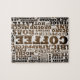 Coffee types such as macchiato, latte, cappucino, etc all listed in a grunge themed background. Ideal for the coffee obsessed!