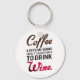 Coffee keeps me going until it's acceptable to drink wine in mixed font. Coffee in brown font and wine in red gradation coloured font.