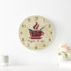 The clock is more than I expected. The colors are perfect for our newly painted kitchen and the adding of our personal touch made this purchase very unique which is exactly what we were looking for. Every factor of the clock is perfect. It keeps perfect time, the coffee cup draws your eye and the printing really finishes the look and the colors are the same as you see when you order it.. We are very pleased.