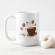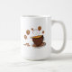 Coffee Love is a coffee cup with flying coffee beans