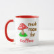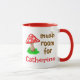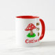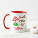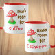 Cute mug features a mushroom saying "It's a must room for coffee (or tea or anything else as you can personalise), and It's a must room for you (personalised name)".