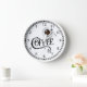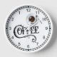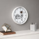 A modern and fun clock with a backward clock face has the word coffee in the middle below a realistic cup of coffee that has a silver teaspoon resting on the saucer. This design is ideal for coffee lovers; for a barista; coffee shop or restaurant. They are a fun and cool gift for kids and adults too.