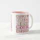 A gorgeous word cloud mug featuring a coffee theme. Choose from a variety of mug styles. This design looks great paired with a maroon or light pink mug interior. A perfect gift for a coffee lover!
