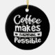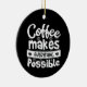 Coffee themed ceramic ornament with white text reads Coffee Makes Everything Possible! If you are a coffee addict or just someone who can't start the day without a cup of coffee you'll love this coffee saying ornament!