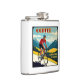 The flask itself is fine. It’s a cheap flask, obviously bought in bulk, however am prepared to overlook that. Given that it is a personalized item, I would have liked to have seen gift boxing instead of the generic packaging. Terrible printing, and/or quality. It’s a cheap, tacky vinyl. It is not cut straight and is also applied in a way that it is overhanging the bottom, causing the glue to catch on items and it will eventually roll and tear, damaging the wrap.