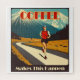 You run over high mountains and do ultra running races because of coffee and coffee alone. This great design shows a runner in the mountains in the style of a retro vintage travel poster.