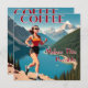 You run over high mountains and do ultra running races because of coffee and coffee alone. This great design shows a runner in the mountains in the style of a retro vintage travel poster.