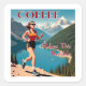 You run over high mountains and do ultra running races because of coffee and coffee alone. This great design shows a runner in the mountains in the style of a retro vintage travel poster.