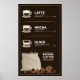 Coffee menu with price list Types of coffee preparation with cup Template flyers