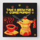 COFFEE MOMENT /Red Yellow Coffee cup and coffeepot Square Wall Clock