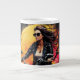 Fuel your mornings with a dose of adventure and style! Our exclusive coffee mug features a stunning design of a girl confidently riding a sleek, black motorcycle. Dressed in a chic black leather jacket and helmet, she epitomises freedom and coolness. The modern motorcycle, adorned with gleaming chrome details, adds to the dynamic look. Against the backdrop of a vibrant, colourful sun, the image radiates energy and excitement.