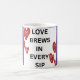 "Love brews in every sip" symbolises the idea that love, like coffee, is something to be savoured and enjoyed slowly. Each sip represents a moment of connection and warmth, much like the small, meaningful moments in a relationship. Just as coffee invigorates and comforts, love brings energy and comfort to our lives. The quote captures the essence of love being a constant, delightful presence in our daily routines.