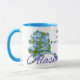 The wild, little, Alpine Forget-Me-Nots officially became Alaska's state flower in 1917, before Alaska officially became a state. Such as it is with this lovely little bloom. There is much symbolism in the floriography of the "Forget Me Not": true and undying love; remembrance when parted from loved ones or even after death; a visceral connection that lasts through time; and fidelity and loyalty in a relationship, despite the challenges of separation. Symbolic of remembrance of the Armenian Genocide that started in 1915, the Forget Me Not is also an icon of the Alzheimer's Society, used to raise awareness for this debilitating disease that makes our loved ones forget. But this design is not just a tribute to this lovely little flower, it also pays homage to our 49th state, Alaska. Most think of glaciers and ice and snow and cold when they think of Alaska. As nearly one-third of the state resides within the Arctic Circle, that's understandable. However, in 1915, Alaska experienced a record-breaking high of 100 degrees (F). Of course, in 1971, they experiencecd a record-setting low of -80 degrees (F). Some of Alaska's terrain is quite mountainous. Mount McKinley, in Alaska's interior, is the highest point in North America at 20,320 above sea level. In fact, seventeen of the twenty highest peaks in the United States are in Alaska. When you think of volcanos, you might (reasonably) think of our 50th state, Hawaii. However, Alaska's Mount Augustine erupted as recently as 1986. If you remember your American history, you know that the purchase of Alaska (at a price of two cents per acre) was once called "Seward's Folly" since Secretary of State, William Seward made the offer to buy it from Russia. The subsequent "gold rush" of 1880 and the more recent discovery of what is thought to be the largest oil field in North America proves Seward's offer was anything but folly. In addition, most of America's salmon, crab, halibut and herring come from Alaska. Alaska is the largest state in the United States and is more than twice the size of Texas. To better put this into perspective, the distance from Jacksonville Beach, Florida to San Diego, California is roughly 2,365 miles; Alaska is 2,700 miles wide. Given it's rich (pun intended) history, it might surprise you to learn that the state motto for Alaska is, "North to the Future". This delightful design, celebrating the 49th addition to the United States, offers an outline of the state of Alaska, filled with their state flower, the wild, Alpine Forget-Me-Not. This gorgeous coffee mug is a terrific option for state memorabilia collectors or for anyone wanting to pay homage to our amazing 49th state. The original state outline is overlaid with the purple "ALASKA" and "The Last Frontier" is in the upper corner and beautifully coordinates with the handle and brim of this delightful cup.