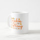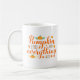 This ceramic coffee mug is shown in white with a autumn pumpkin spice print.