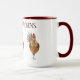 This two tone coffee mug is graced by some pretty colourful chickens to help perk you up with your favourite morning brew. Three chickens along with text reading Bless My Chickens with maroon red interior and handle. Multi coloured on white mug. Customise this item or buy as designed.