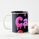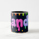 This mug features a vibrant, playful design with the word "Candy" in large, colourful letters. Each letter is designed with a glossy, melting effect, resembling dripping candy or icing, in shades of pink, orange, and red. The letters stand out against a dark navy-blue background, making the bright colours pop even more. The inside of the mug and the rim are black, which complements the colourful, fun design on the exterior. The overall style evokes a sweet and whimsical feel, perfect for someone who enjoys bold, eye-catching designs.