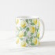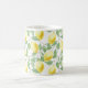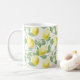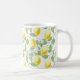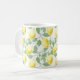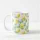 This ceramic coffee mug is shown in white with a cute summertime fruit of lemons print.