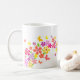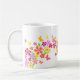 This ceramic coffee mug is shown with a lovely summer floral print.