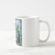 This coffee mug celebrates spring with a picture of a bee and flower.