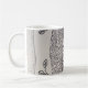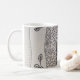 Coffee mug with black and white drawing